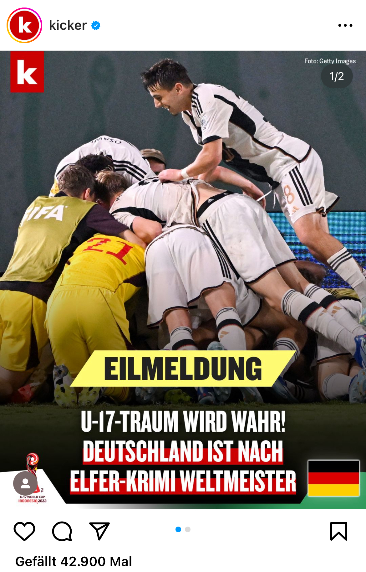Mit hoher kicker-Reichweite zum Titel: U17-Weltmeister sorgen für steigende Aufrufzahlen und positive Social-Interaktionen