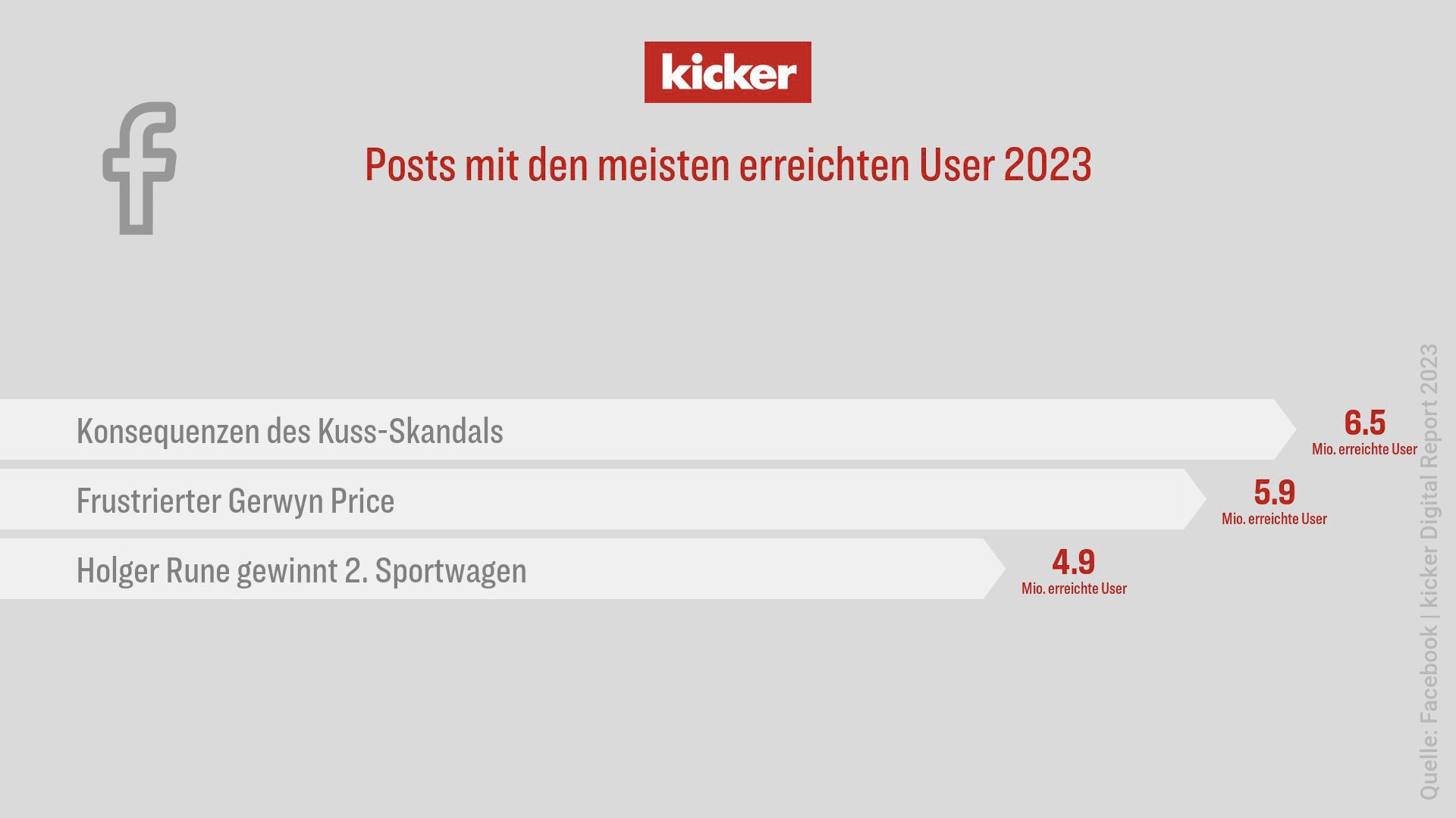 Im Jahr 2023 gelang es dem kicker die Reichweite der Online-Kanäle die Reichweite signifikant zu steigern. Insbesondere auf kicker.de und der dazugehörigen News-App konnte ein Anstieg der Seitenaufrufe um ca. 26 Prozent im Vergleich zum Vorjahr festgestellt werden. Auch in den sozialen Medien zeigt sich auf den Meta-Plattformen ein kontinuierliches Wachstum. Der neue Digital Report vom kicker bietet Einblicke in die am häufigsten besuchten Profile, Liveticker, Videobeiträge und Podcasts sowie in die Social-Media-Inhalte des Jahres 2023. David Gohla, Benjamin Schmid, Felix Kneidl und Alexander Wagner blicken auf das vergangene Jahr zurück, das auch ohne Fußballgroßevent äußerst erfolgreich war.